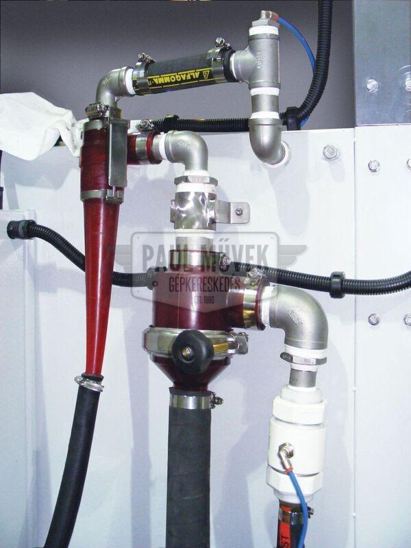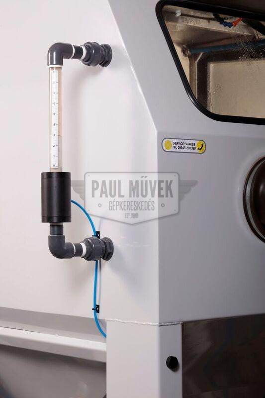 - Fine broken down media and other contaminants are fed via an overflow to a sedimentation filter located at the rear of the wet blasting machine.