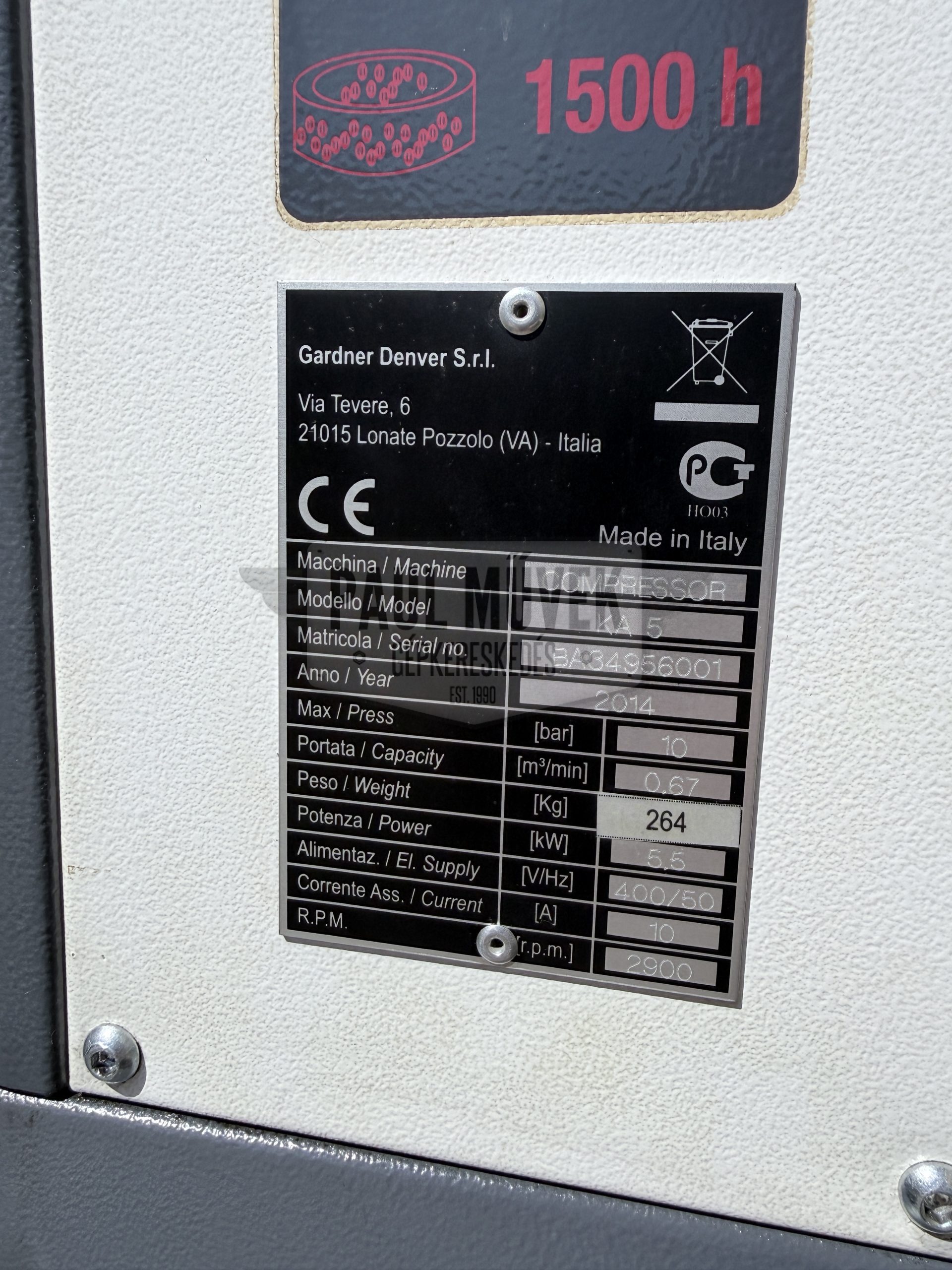 - Teljesítmény: 5,5 kW/7,5 HP – 380 V/3 Fázis/ 50Hz