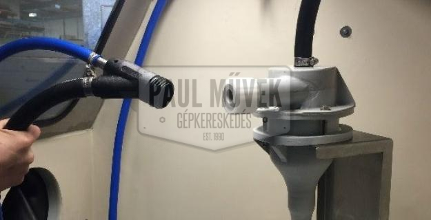 A hidrociklont úgy tervezték, hogy a vizet körülbelül 90%-ban elválassza a fúvóközegtől. Ideális a gép kiürítésekor vagy a csiszolóanyagok cseréjekor.